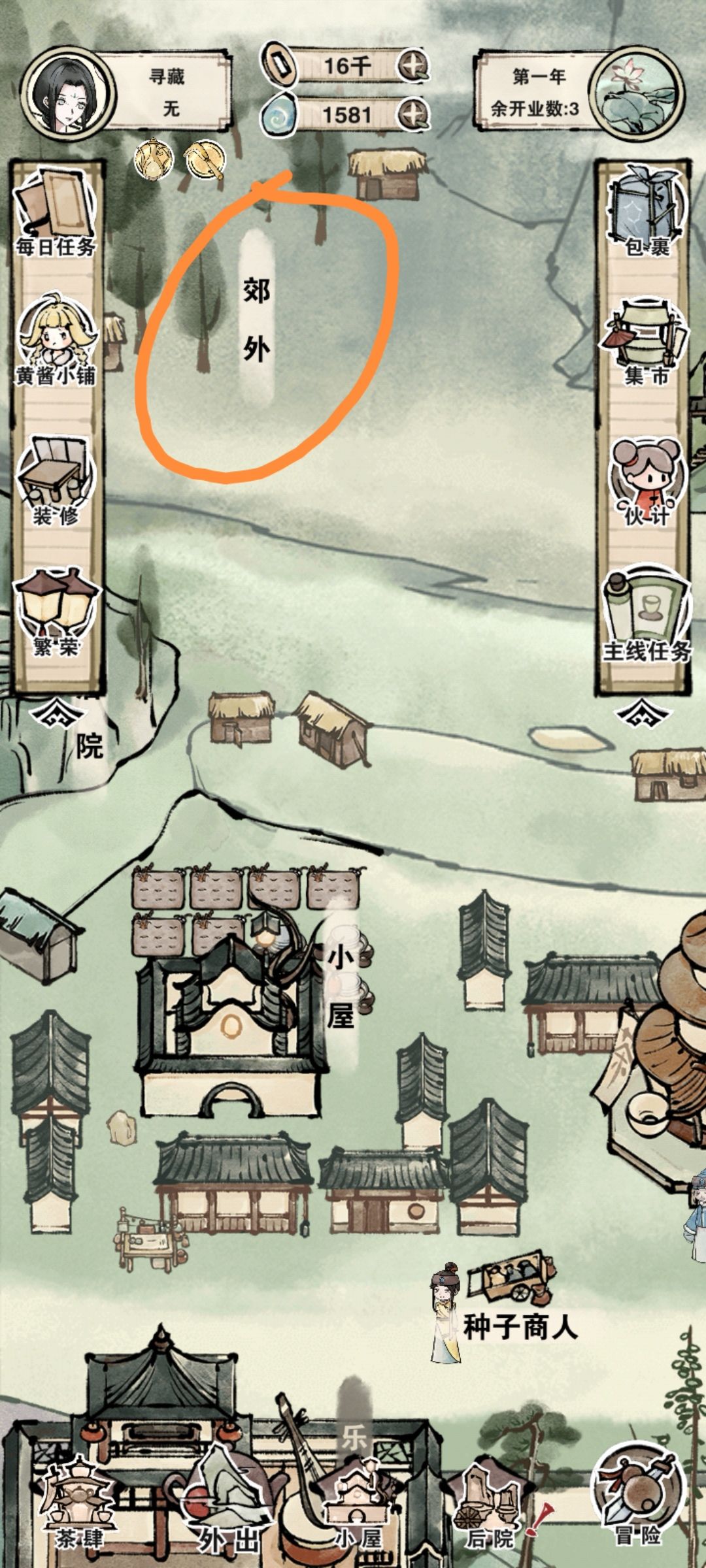 进入方式为主线开启“外出”(装修买)