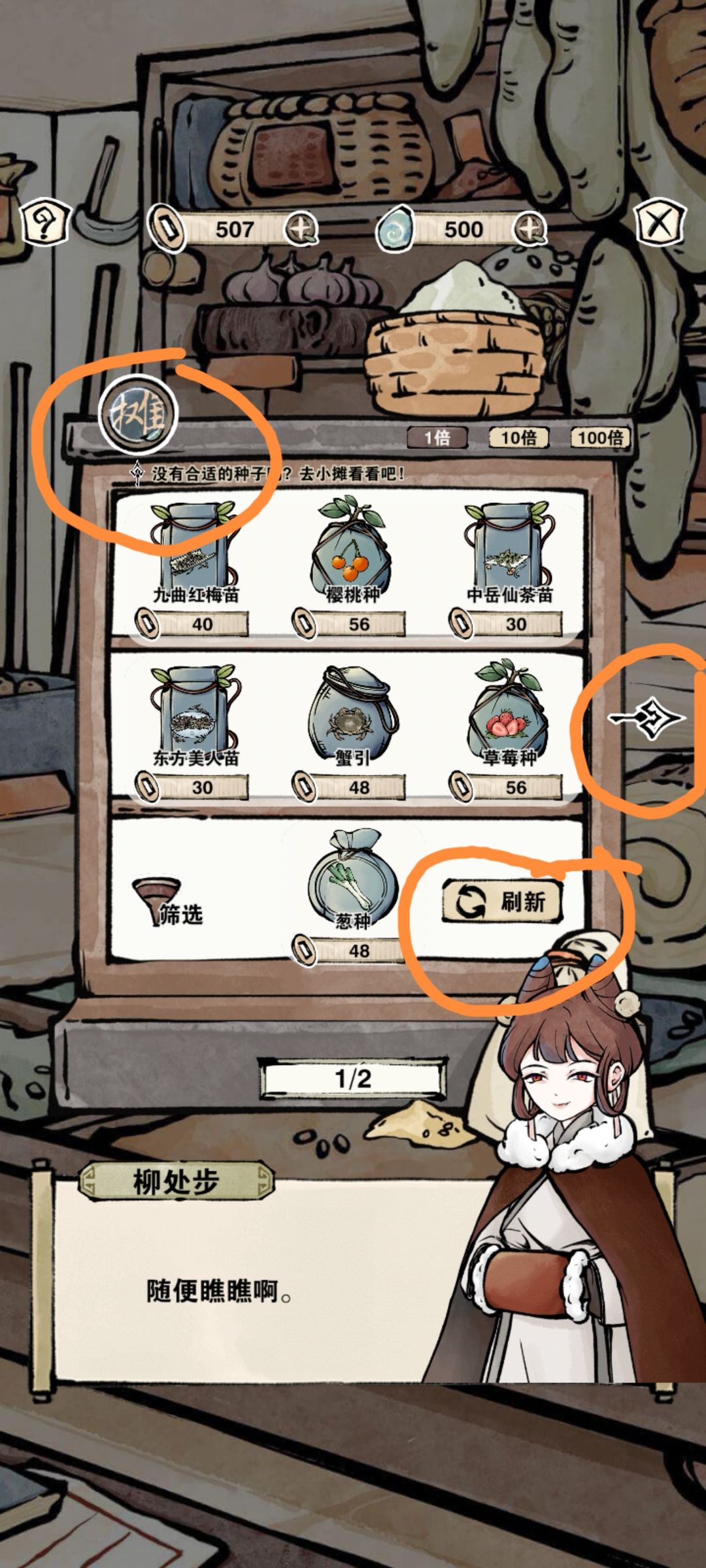 1.各类种子暂时只推荐购买十个,要一个一个点,因为种子铺好感计算方式是购买次数,不是购买数量。