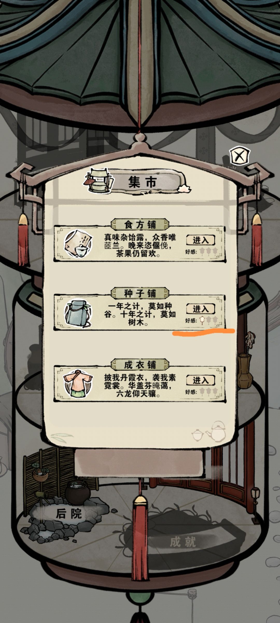 在看到种子铺的好感小灯笼亮起后,可以点击刷新。