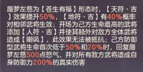 玄渊吕布(姜维):盾C当中的“C”,这两者的共同点在于自身的输出资质非常拔群,伤害属于全体性质,总伤害量非常可观,并且拥有可持续的输出强度,这两个纯粹的输出也非常依赖盾体系对于其输出环境的保护,和盾体系的契合度相当高,更重要的是,这两个C位都有享受队友被击杀的“献祭”收益,玄渊吕布可以回复怒气打出额外怒攻,姜维可以继承怒气并且进行群体普攻。