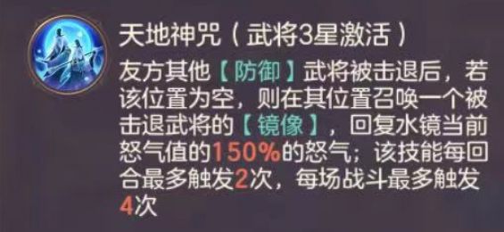 于禁(董卓):功能各异的优质防御武将,都是盾体系的好选择,于禁对于护盾的克制度有目共睹,能给全队尤其是主C提供回怒回血,而董卓则是可以依靠自身超高反弹率,配合水镜的复活打出大量输出。
