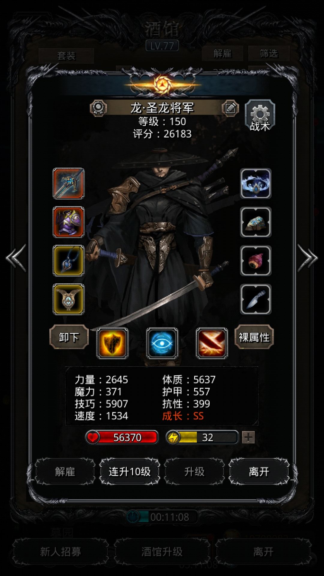 老苏第一阶段绝对是0氪党+非酋的地狱,圣龙反击YYDS。参考贴吧大神,砸锅卖铁升了一个技巧及格的圣枪,勉强凑够了技巧属性,带了裁决勉强保证不会一击致命(只要抗过第一击,后面都能吸回来)。圣骑用盾锤,拒绝刷脸,开局依次奶狂战,圣龙,自己,不用带先发。圣龙带先发可以多反击一次,输出不够这点很重要。