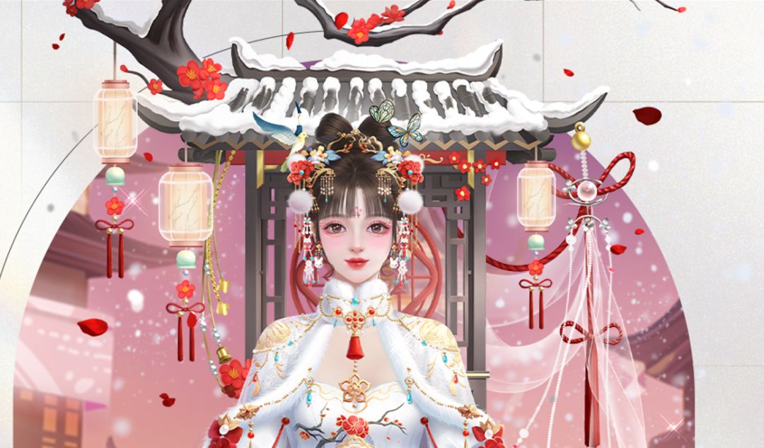 《我本千金》与非遗扬州绒花联动,将绒花元素植入春节五星服装「梅雪相思」的头饰。经过画师精心刻画,绒花那华贵而不失生动的特性,以更好的质感呈现在三小姐面前。