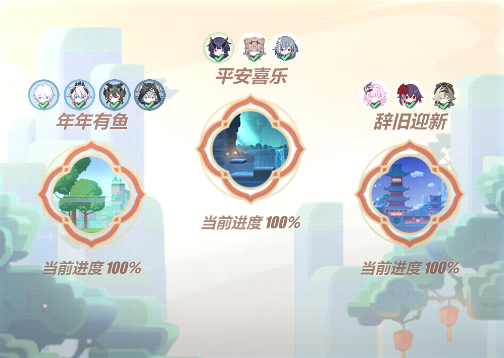 在【步步高升】中,我们可以挑战两种主题的关卡。前者【循迹探索】的主题是爬塔,后者【登高望远】的主题是角色挑战,两者都可以获得计入右下奖励的积分。在达到13000分后即可获得本次活动的勋章【年夜月明勋章】。