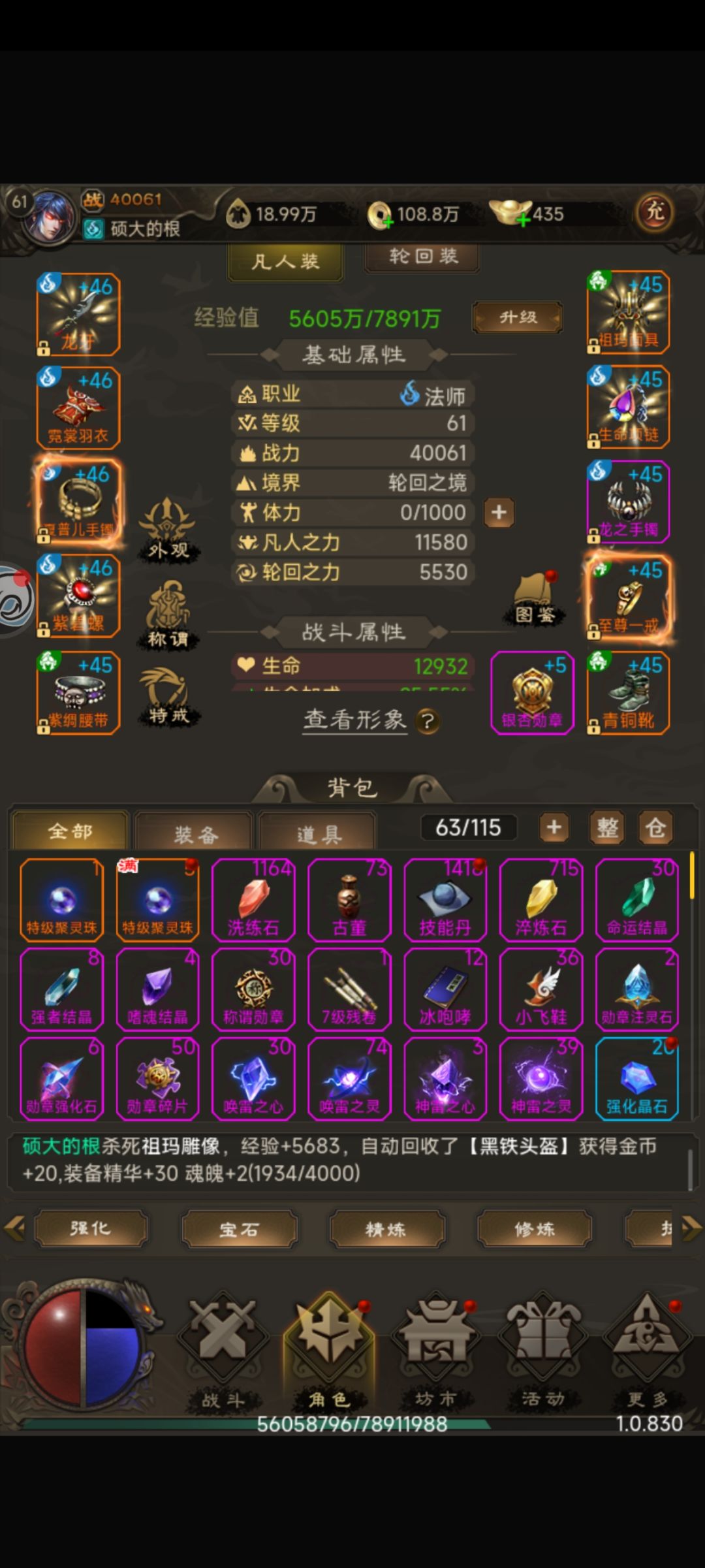 第四天的三个任务:突破境界、淬炼装备、占坑为王。首先突破境界的话,凡人境对应凡人装备的战力,这个换好装备,高等级的,词条好的,战力就达到了,再消耗点经验,能加战力。凡人境的话,达到20重就够了,25重太难。轮回境对应轮回装备,轮回战力比凡人好提升,基本第五天就能到2重,战力不够就洗洗洗,刷刷刷!这里注意一下,突破到2重要4亿的经验,所以不要冲级太快,58级够穿装备就够了,然后攒经验,突破完了再升到60级。占坑为王就不多说了,送分题。这样就14个任务了。