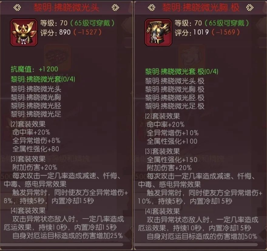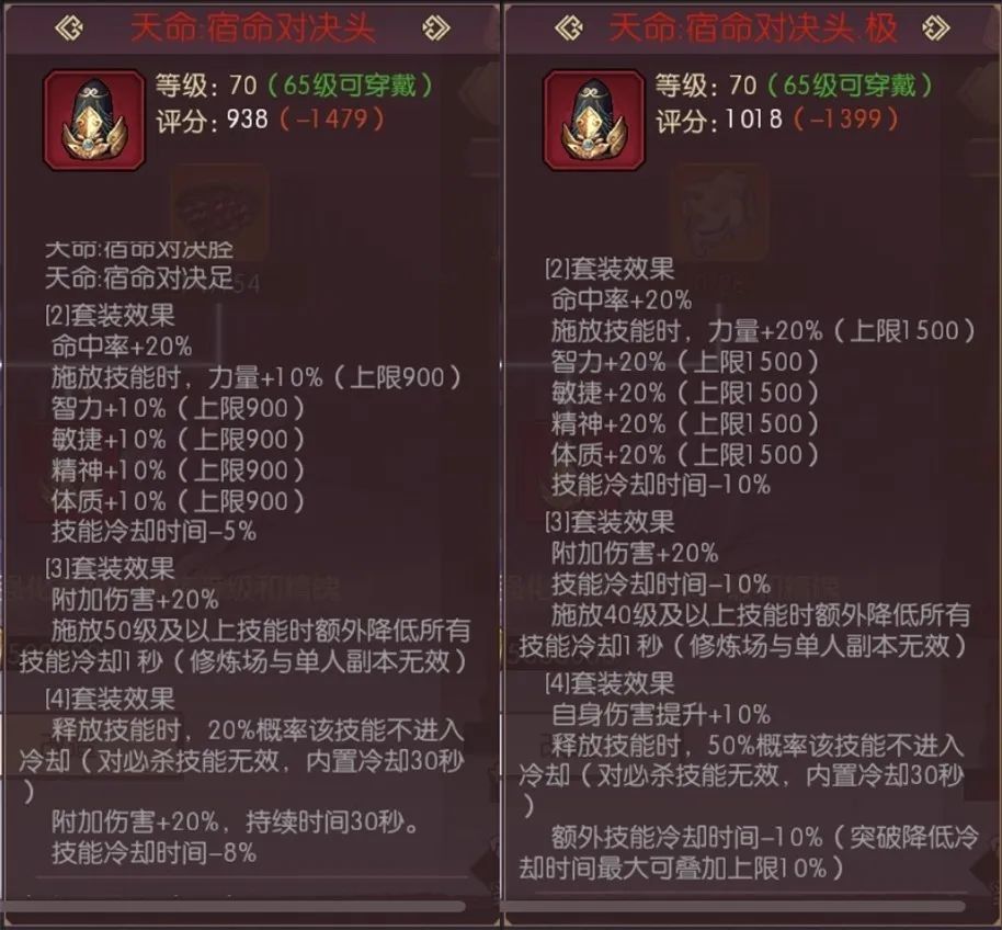 在掌握了技能释放技巧之后,我们该选择什么样装备呢?不妨先来分析一下70版本各防具套装对贺隐的适用性。(个人建议极套前黑夜,极套后观望宿命)