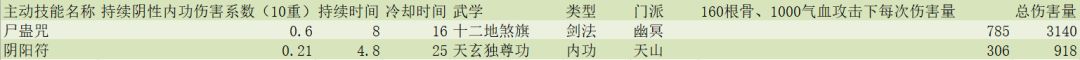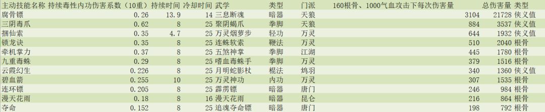 主动技能持续外功伤害和持续毒性、阴性内功伤害排行