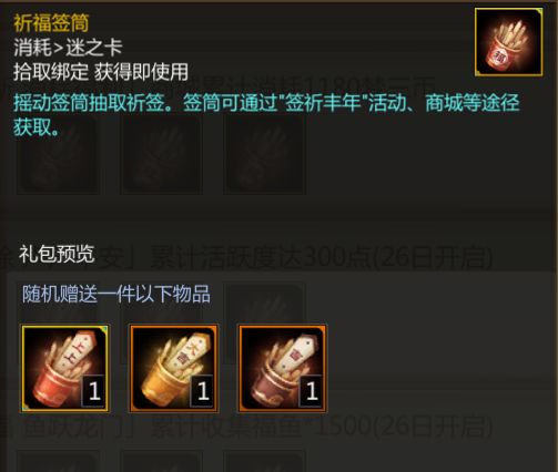 祈福签筒中可以获得卦签·上吉、卦签·大吉、卦签·吉,可以兑换好礼。