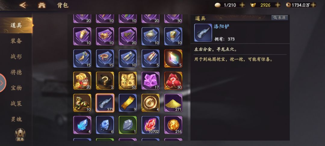 发现最近出了挖宝给电影票的活动,之前因为比较懒,就一直没去挖宝,所以不知不觉囤了373个洛阳铲。