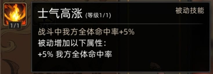拥有为数不多的全体加强被动,可惜是命中率,加成又少。。