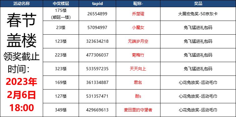 3.除【钱兔无量奖】外,每个tapID只有一次获奖机会,奖励按照最高档发放