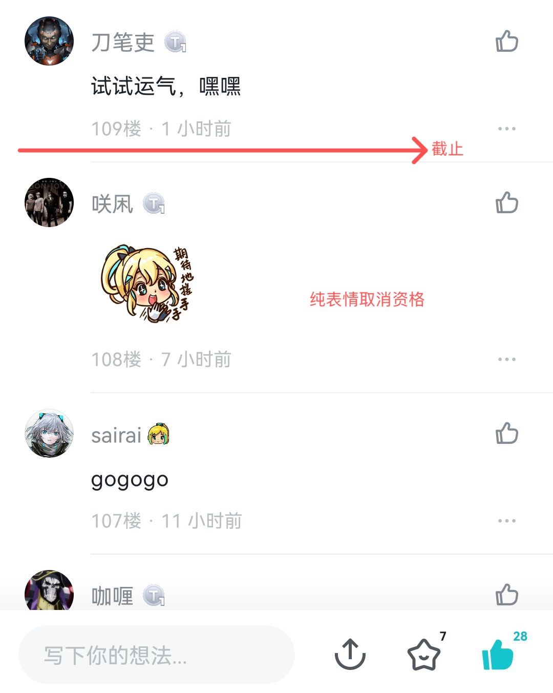 因评论不能为纯表情,第108楼取消资格