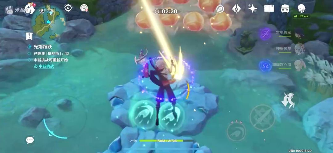 在挑战中获得2000分:20节庆热度+20000摩拉+3大经验书