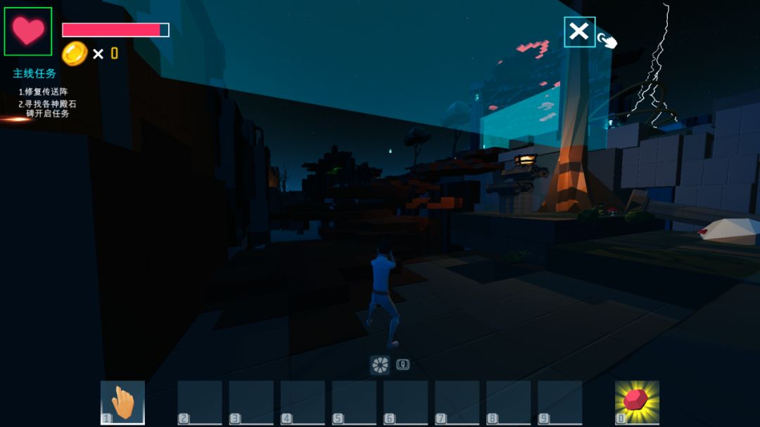 通过红色屏障后,找到机关装置,将其关闭,这样身后的红色屏障就全部消失了。继续向前会发现神殿二号,同样需要搜集三样道具才可激活。