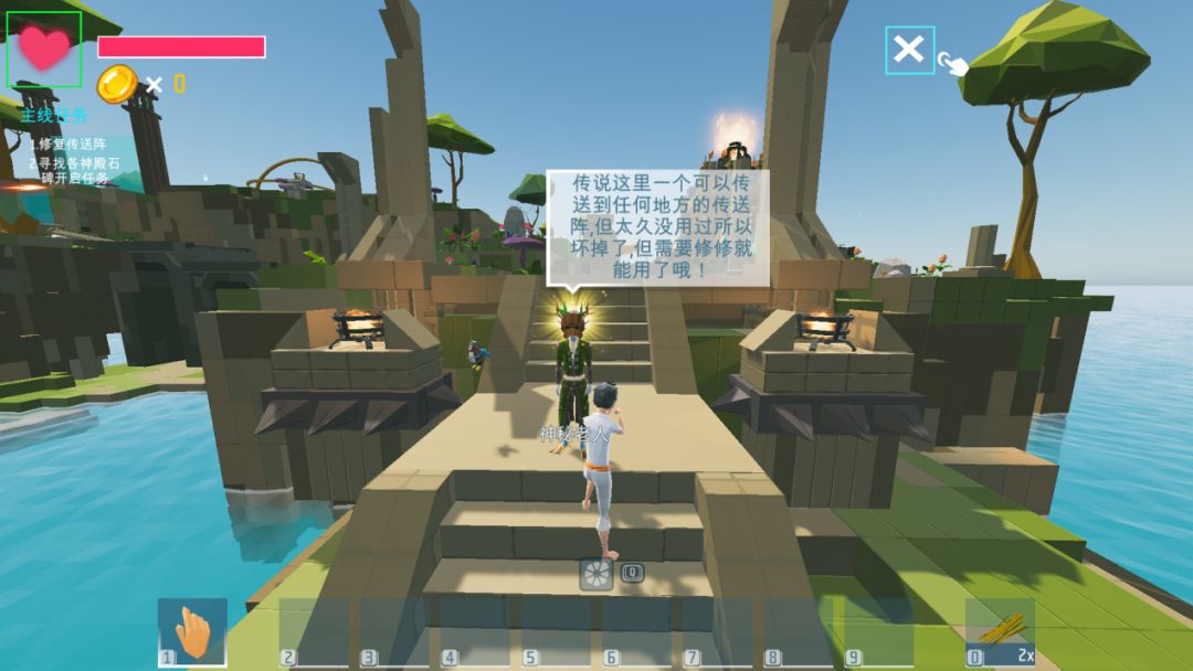 当岛主们快要过桥时,会出现一位神秘老人,与其对话激活修复传送阵的任务,随着任务的激活,神秘老人也会随之消失。然而此时的我们并不清楚传送阵在哪里,所以我们可以先跟着路标指示牌前进。