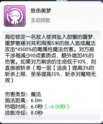1)无[黑色派对]:这种情况下类似刺客的[灵魂堕落],如:单位A,被我的[致命美梦]打了,就会受到 4500*魔攻 的伤害,此时A的血掉到了9%,然后就会计算是否斩杀,此时A血量低于我的斩杀线,他就得死掉无[黑色派对]适合输出海拉