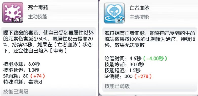 这两个技能是个组合,单用毒药时,就是提供抗性,顺便还能因为海拉被动而隐身,
