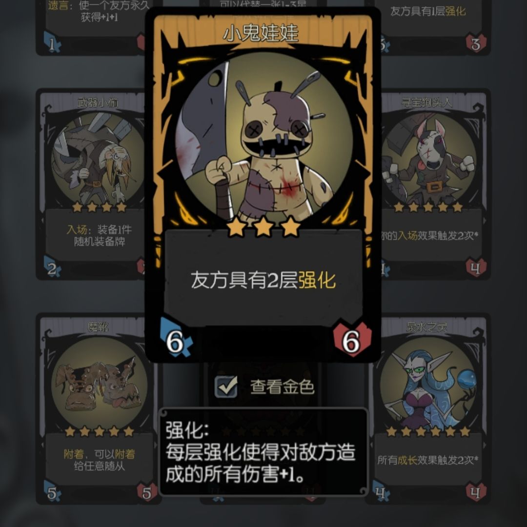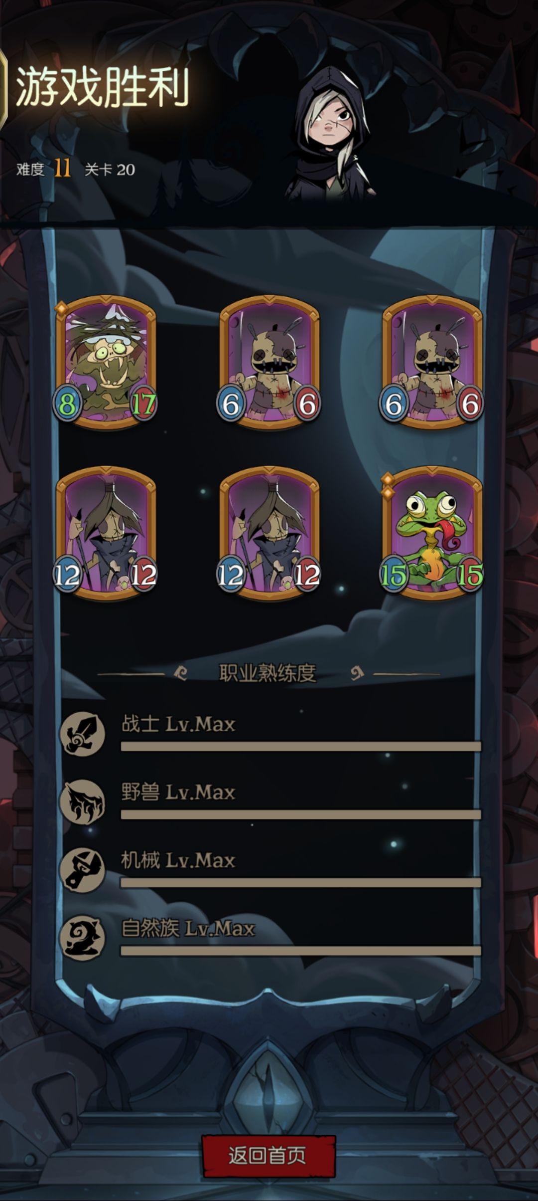 5.没必要急着升6星,如果蜥蜴术士金的话,不需要南瓜王也能通难度11,但是强化必须到位,强化给蜥蜴术士。