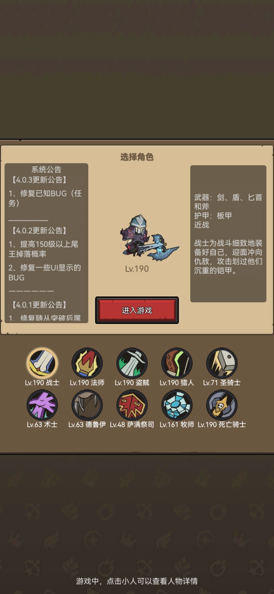 我大概是一个月前玩的这游戏吧,刚开始没有看攻略用战士开的荒,玩到60级选的防护专精。慢慢升到100级发现后面副本打不过,在TapTap和群里看了些攻略才发现猎人和法师适合开荒。不过那时候没打算新建角色就用战士号咸鱼了10来天吧,每天上游戏收收要塞、弄弄强化、钓鱼、考古、酒馆招募、刷刷免费副本。随着时间推移属性慢慢上涨终于是过了去冰封大陆的任务,到了后面发现防护更刮痧,终于忍不住开了猎人并第一个通了150副本,顺便一说第一次过就给了把红剑;手册活动的时候开了盗贼,盗贼是真香啊,各种装备坐骑饰品都摸到了,嘿嘿。后面公共仓库爆仓陆陆续续把所有职业都解锁了,现在190版本就是每天上线练练级等200,附现在角色截图一张。