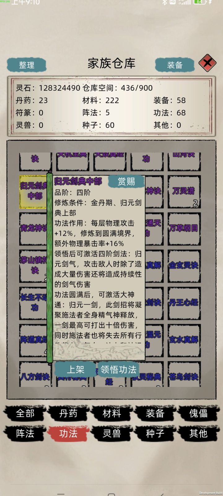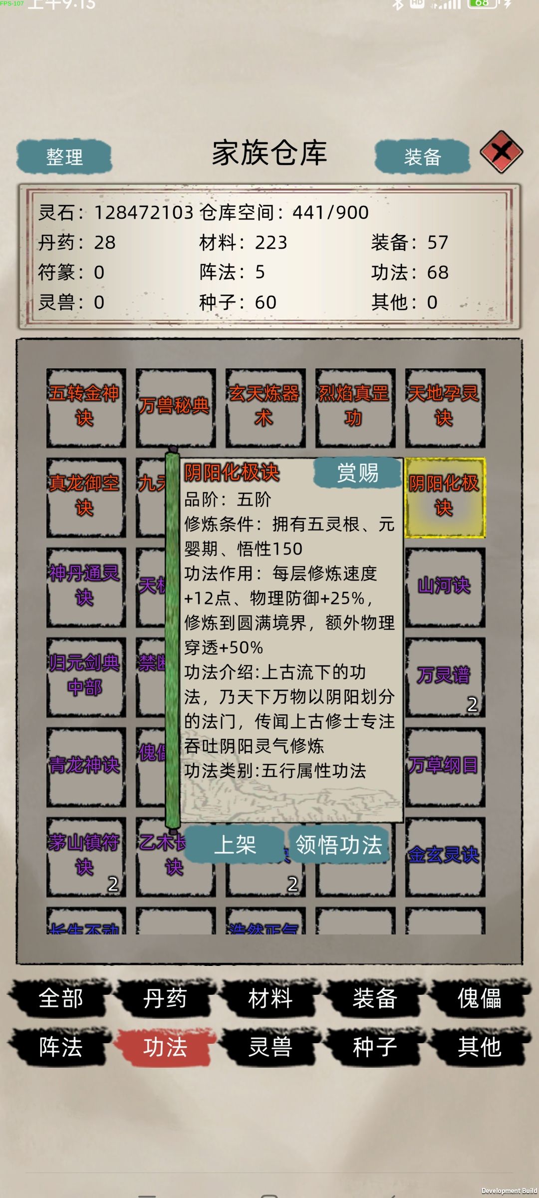功法是修仙家族传承与发展必备也是游戏的最大特色玩法,捡到神级功法千万不要错过。