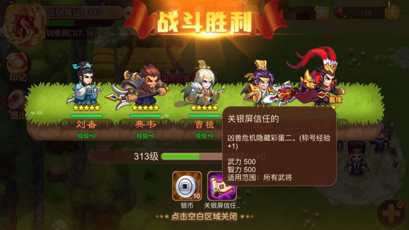 全金 风套张宝抗伤害 刘备月套给吕布加武力 吕布85万武力 暴击75 典韦79万武力 暴击50 全靠老天出暴击 打了不下20次 终于打过了
