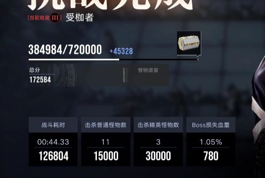 时限两分半,每秒1200,共18w,boss7w5(每1%750),其余4w5(普通怪1w5精英怪3w),召唤物不计分