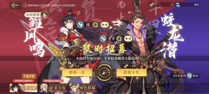 而新手期到千岁池子结束——不说极限,就说以高强度开荒的状态,能有个两百抽出头就顶天了,其中10抽贡献给新手福利的1400钻随机S,其余还有歪绫的可能性,剩下能有几个千岁?有人可能说不可能次次保底,别说,个人感觉号的后期可能会回暖,但前期遇到这种情况的真不少。我游攒卡其实挺快,但这个概率也是真毒。最大的影响反而是你的开荒热情,兴致慢慢地把还没捂热的资源投进去,结果出来一金九蓝,还一连十几次都是,还第一次吃上保底就歪。要不是充了点小钱我早润了。