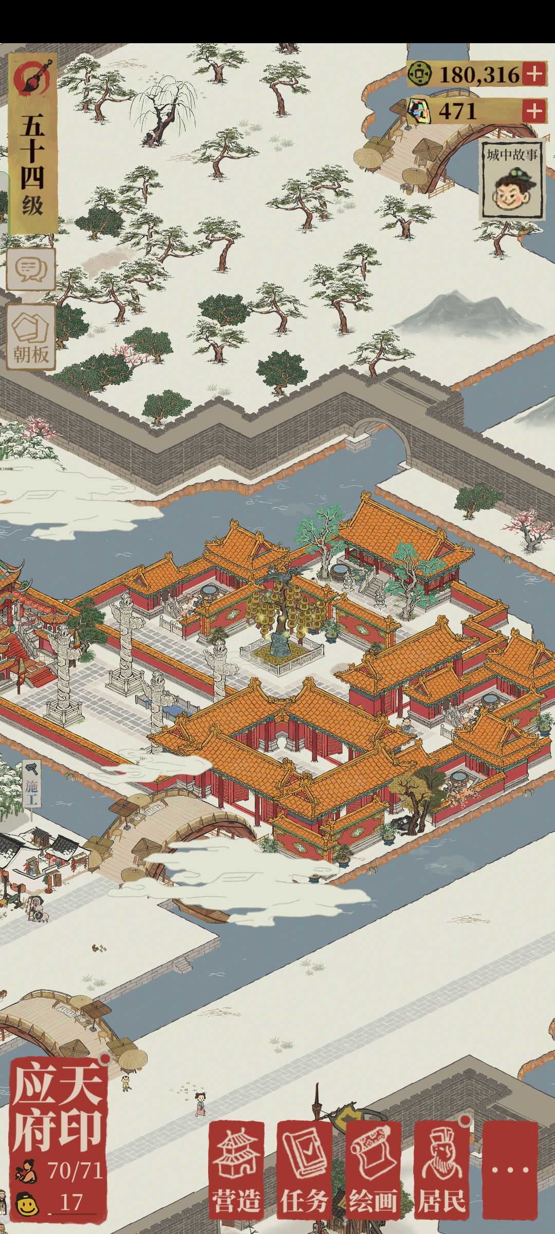 压岁钱已经用完了,没有天,只能用妈祖庙代替了。宫墙全用了,只有这些墙了,侯级的俩还剩了十几个。贫穷的仓库只有这个摇钱树(还是今天的礼盒出的)能掏出来了。还有几个小格子可以放什么植物或者建筑。(万轴殿右边的空地,两个瑶台宫中间有一个一乘二的空地)