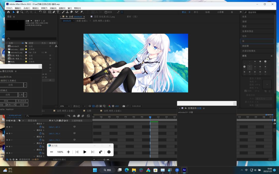 作为一位白羽厨,当我初步掌握了制作动态壁纸的技术后便有了采用这份cg制作动态壁纸的想法。从立项到抠图补图,以及后面的动效制作和bug排查花费了六天的时间,尽管因为技术问题一些问题仍然没能处理好(例如壁纸的海水晃动效果不好,以及眼睛皮肤的问题修了几个小时仍然没有很好解决),但已经竭尽所能去修复bug和改善壁纸,向各位呈现更加完美的壁纸。