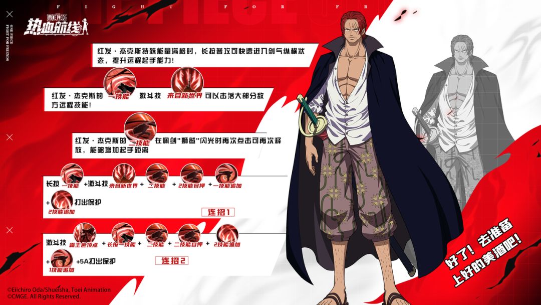作为君临新世界的“四皇”之一,拥有霸王色霸气的红发·杰克斯实力惊人,在剑气纵横形态的战斗模式下可对敌人进行远距离攻击。本期连招速成班,乔小巴为各位船长准备好了实用的技巧和连招心得,希望大家都能在新伙伴红发的陪伴下赢得更多战斗胜利!
