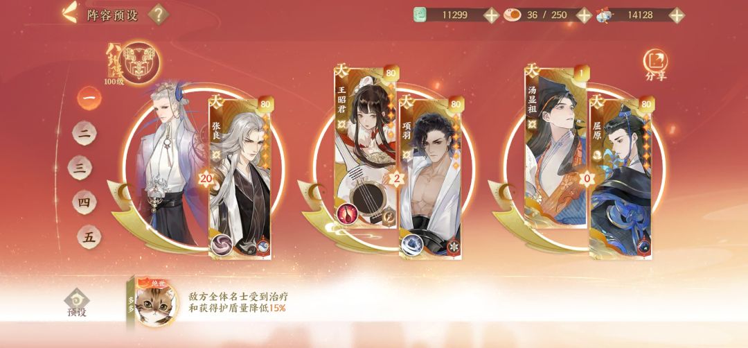 举例阵容:1.李世民 玄奘 李清照 卫青 黄道婆