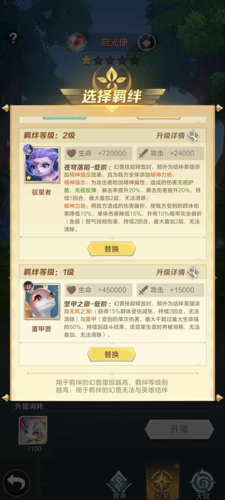 首选,凌驾于其他五只的存在,集控制、减输出、偷暴击偷速度于一身。 特殊机制:可以与其他幻兽建立羁绊,获得该幻兽的技能(可以随时替换)。