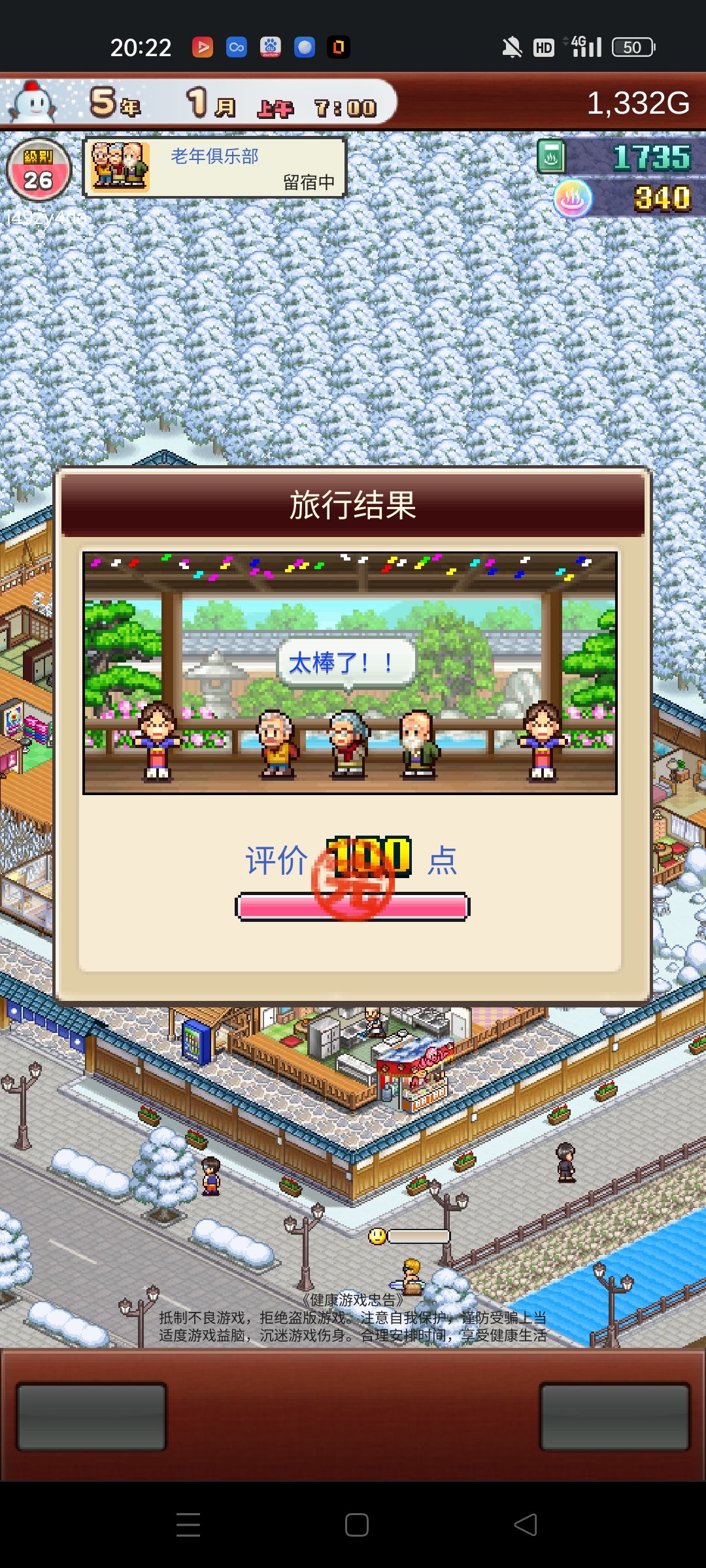 前期的南瓜商店室外建筑只需买足部温泉随便建一个位置用来外面收割研究点数,然后在买饮料机(饮料机不用急着买什么时候买都行这玩意摆在外面收钱),后面在换成章鱼烧收钱,如果前期刷出石头灯笼尽量买。 前期抽奖这方面建议存5张在抽因为有90%得一等奖 (如果想开二周目钻石别乱用,如果不想开可以随便用)