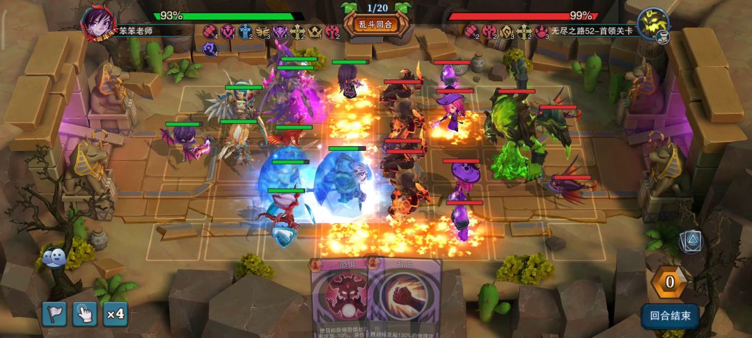 为了多买几个便宜卷轴(实际上金币可能会捉襟见肘),两个月前就开始准备冲无尽,最终3星虎王3星伊苏4星伊神的阵容过了,一路上惊心动魄。最后一关打赤娜好险,还好运气好,摸到囚禁把赤娜扔了。总体借鉴的是coffee大佬的无尽攻略。