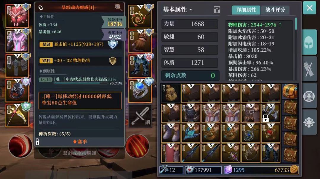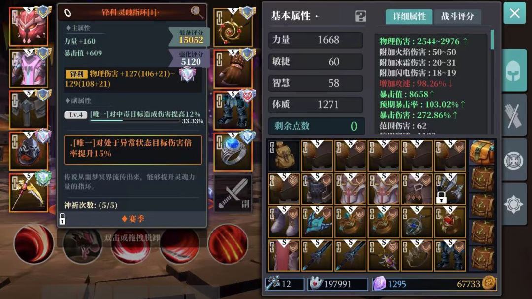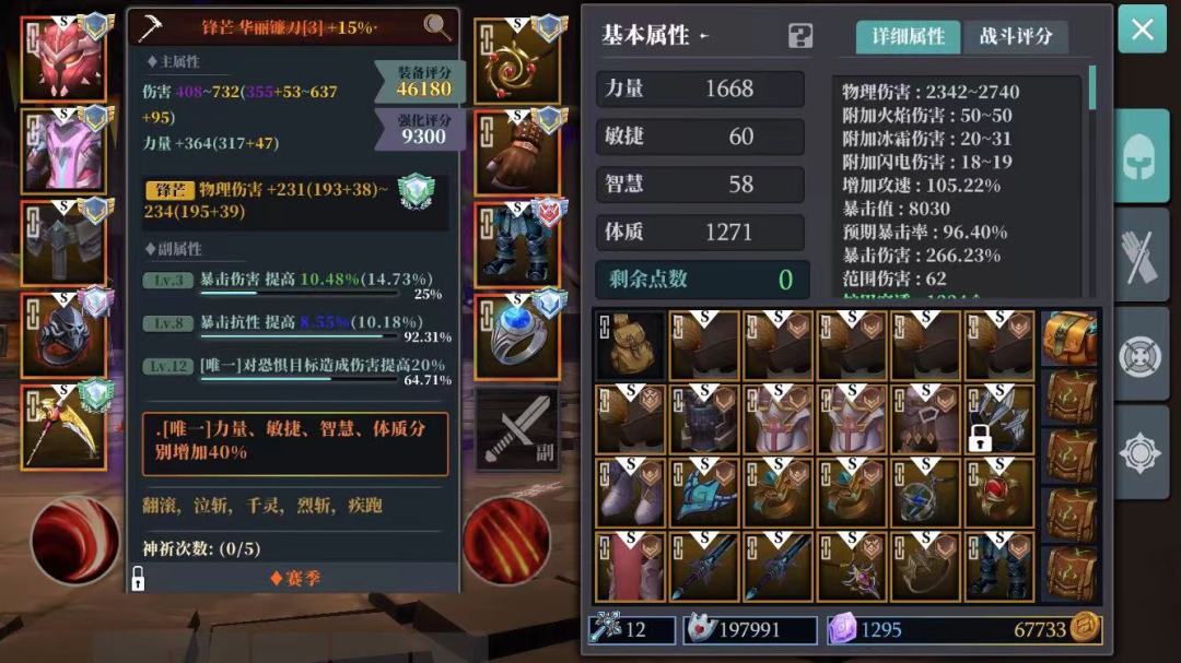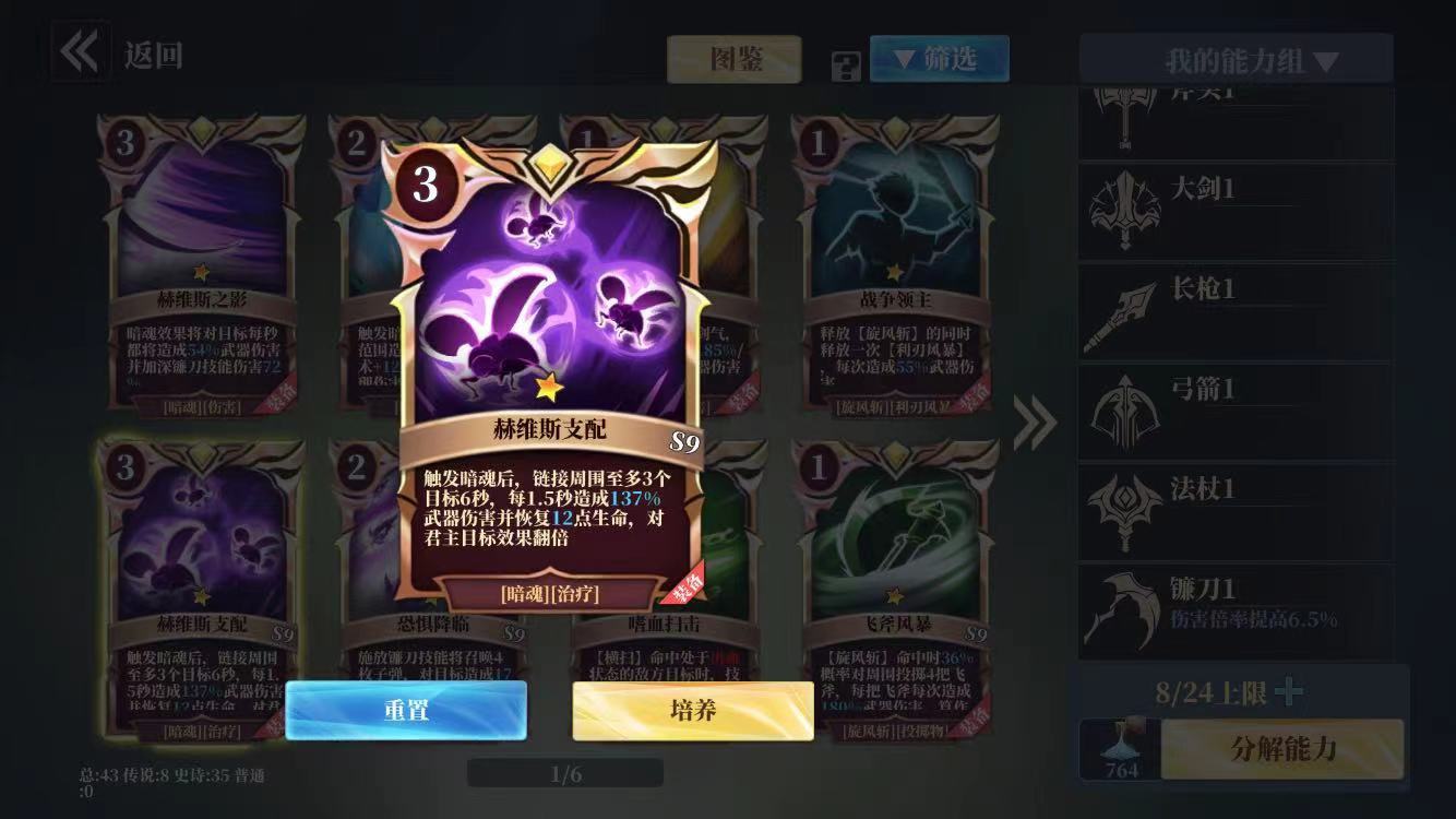 第两个是给我们连招伤害用的。大家都知道烈斩可以用3次,有再斩的话,你就可能可以一次性用多次!我就经常连着用12次(把再斩升级到5牌满),再配合上破败领域和我的毒害,打无尽深渊小怪的时候就很爽。