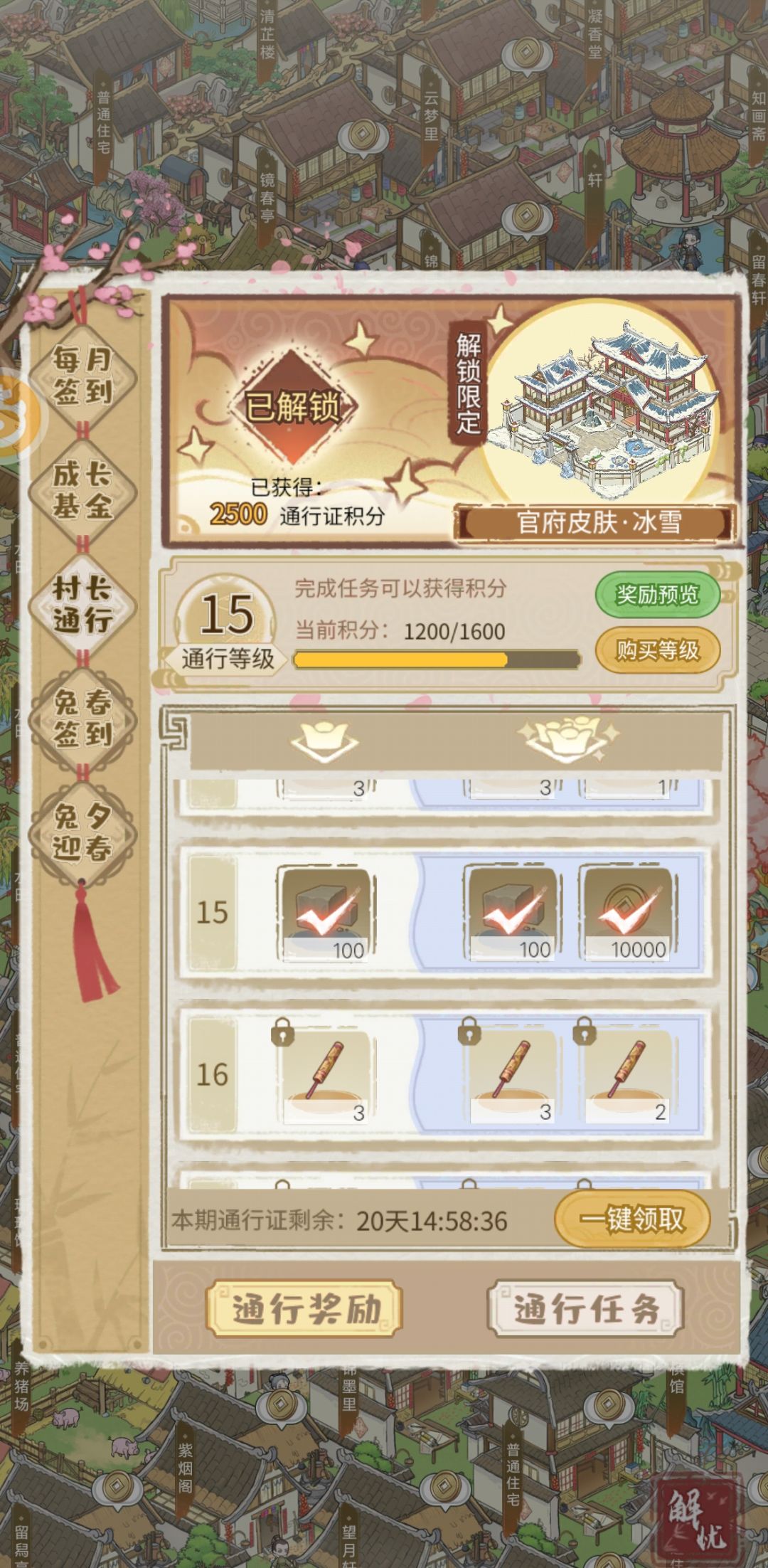 这是氪了通行证给了2500积分状态,目前还有四个本周任务没做,师爷在跑22》23,本周升级16级通行证,按照还有两周一共21个任务2100积分算合计4200,升级算每级1600,通行证只能到18级多点,那剩余一级半需要银子买等级。就想问下XDM目前通行证多少级?是不是我漏了任务没做?(限时任务都做完了!)