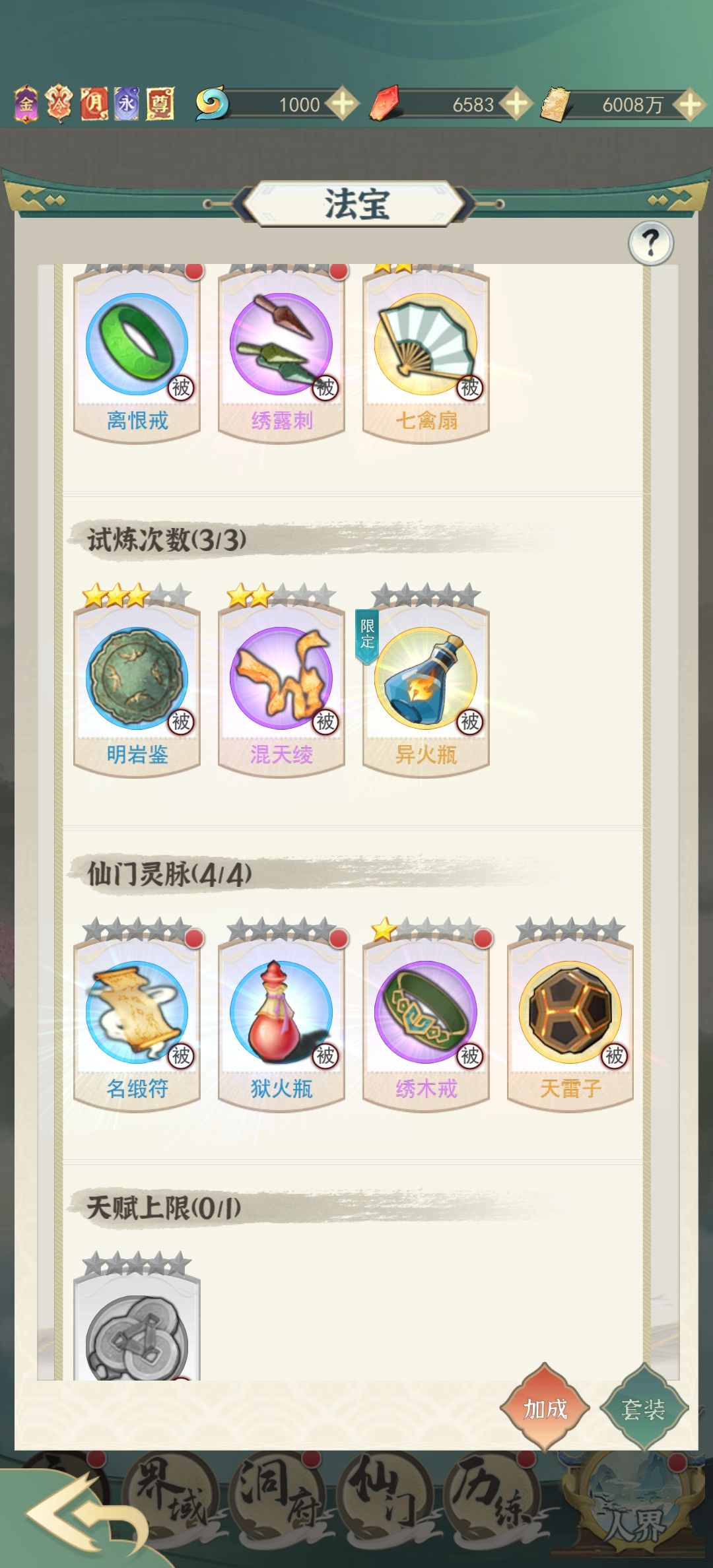次数可太重要拉,后面的进的新手可以考虑节日礼包买个异火。次数来源异宝如下(试炼次数一栏):