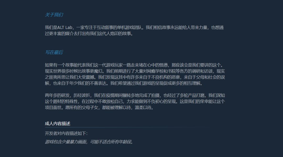在此特地写下这段话也是为了告诫各位,如果是真心喜欢这个游戏,你可以先去看看游戏博主的视频或者是测评来了解一下游戏的完整内容如何,我也是踩过太多坑才会特地写下这段话在前面。当然,如果这段话会被黑子断章取义,也请你保持你自己的理智,因为我是很想看到国内的剧情解谜游戏能够百花齐放的出现在大众眼前,让那些没有接触过游戏的人知道,游戏不等于毒药。