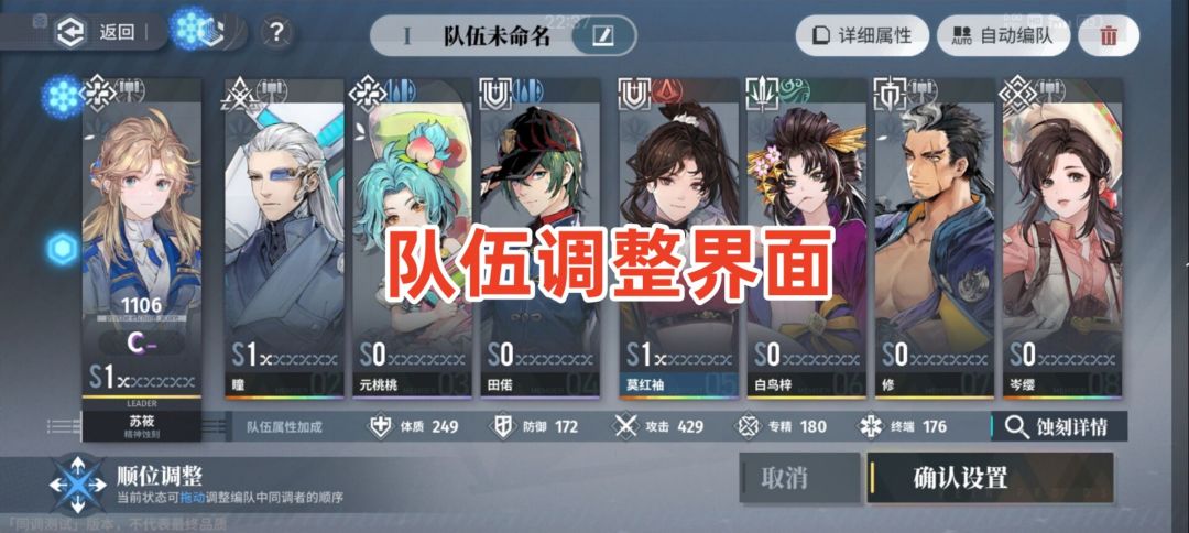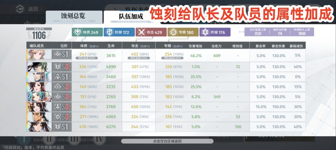 三是选出一位队长(重点培养的人物),确保队长的属性最高,精神蚀刻最高,蚀刻装配在队长身上全体队伍都有属性加成。总而言之呢,战前准备工作就很烧脑,玩家根据角色的职业技能、元素属性合理搭配出8人小队。