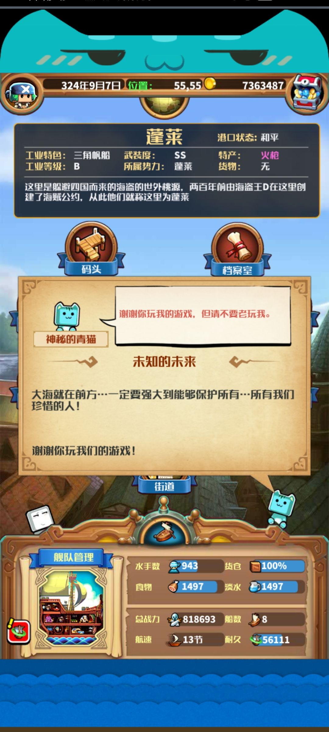 2,船员培养和港口建设一定要看论坛里的功略,船员培养错了后期战力很难突破上去,港口建设的乱七八糟,以后拆的也很心痛(我哭死,我光是浪费在港口上的金币就有小一千万了。)