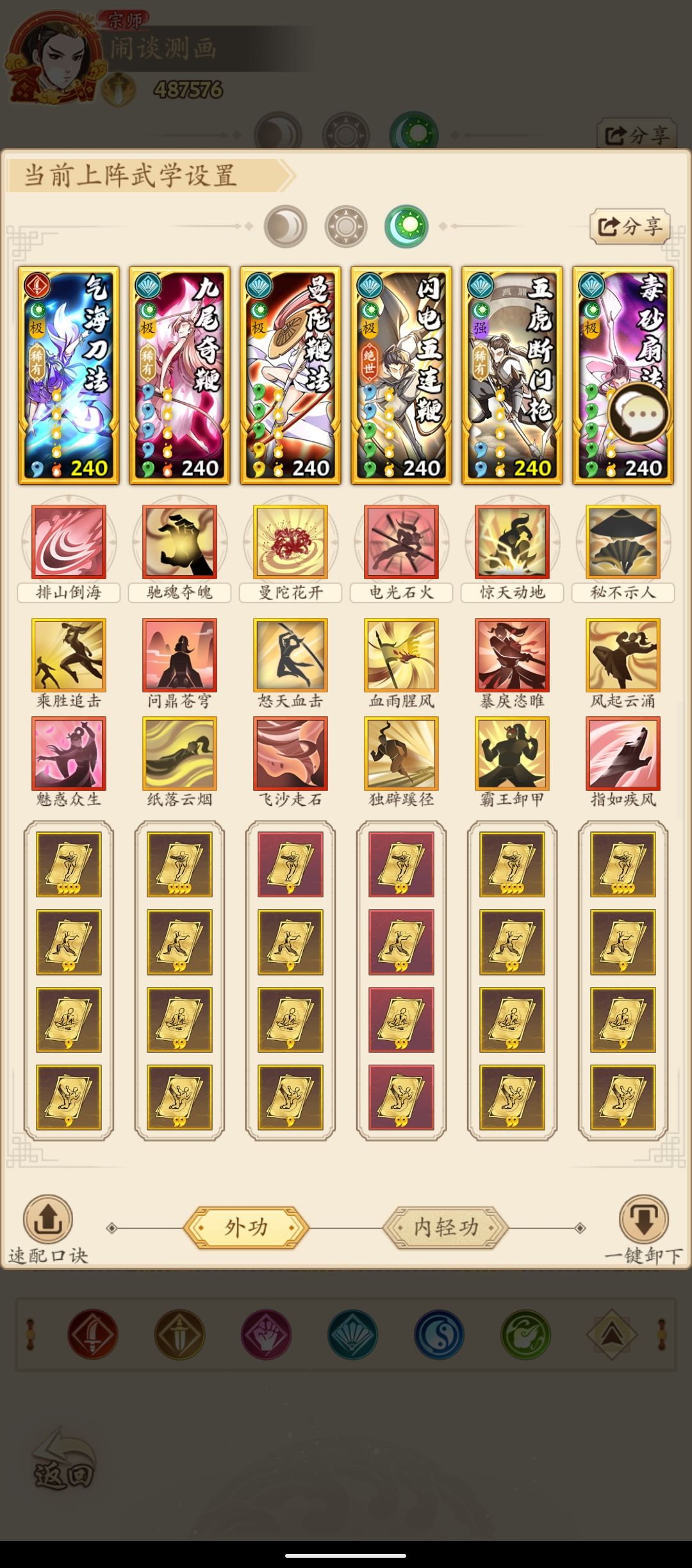 因为我同战中基本可以稳定一速所以选择的气海先手稳定三级心惊,搭配麻痹和心惊的后手哪怕对面提前意识到将重要精进武学放到偏后位置上我们依然有收益。且气海还有后手加减伤的效果