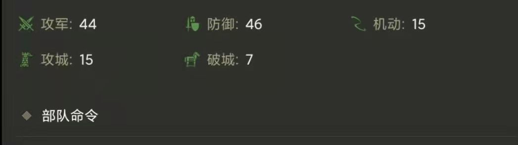 部队的五项属性(攻军攻城防御破城机动)是什么意思?