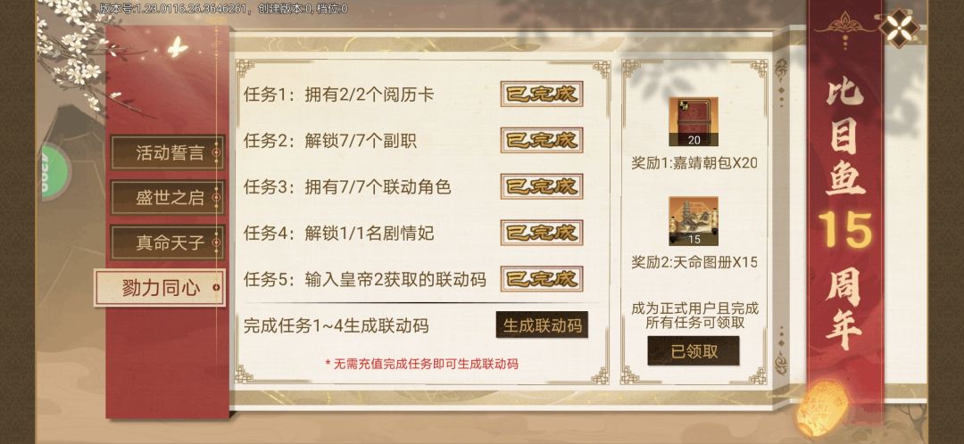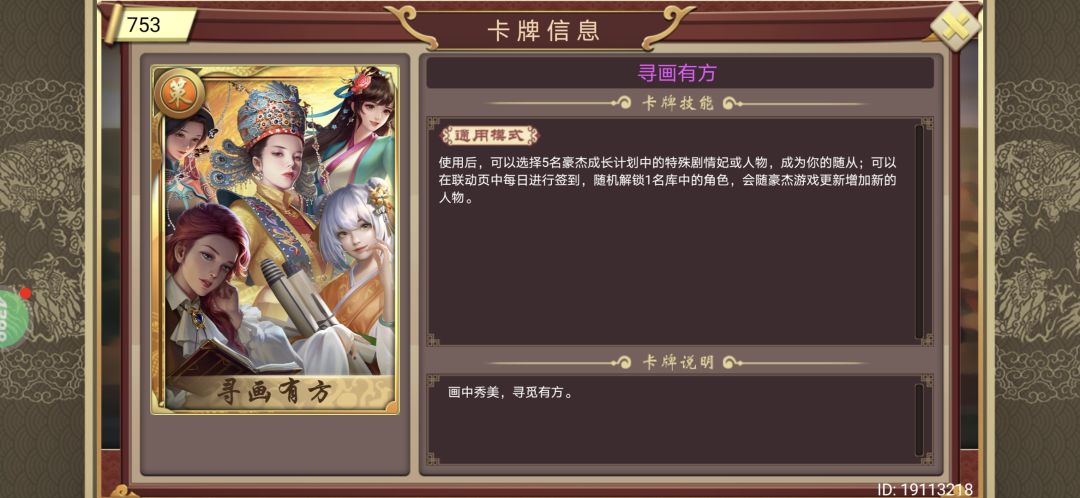 帝成联动任务完成后记得也要每天签到寻画有方,不然以后玩帝成用寻画有方策卡,就只有你签到的那几个人(昨天用了一下,就只有签到得的七个人)