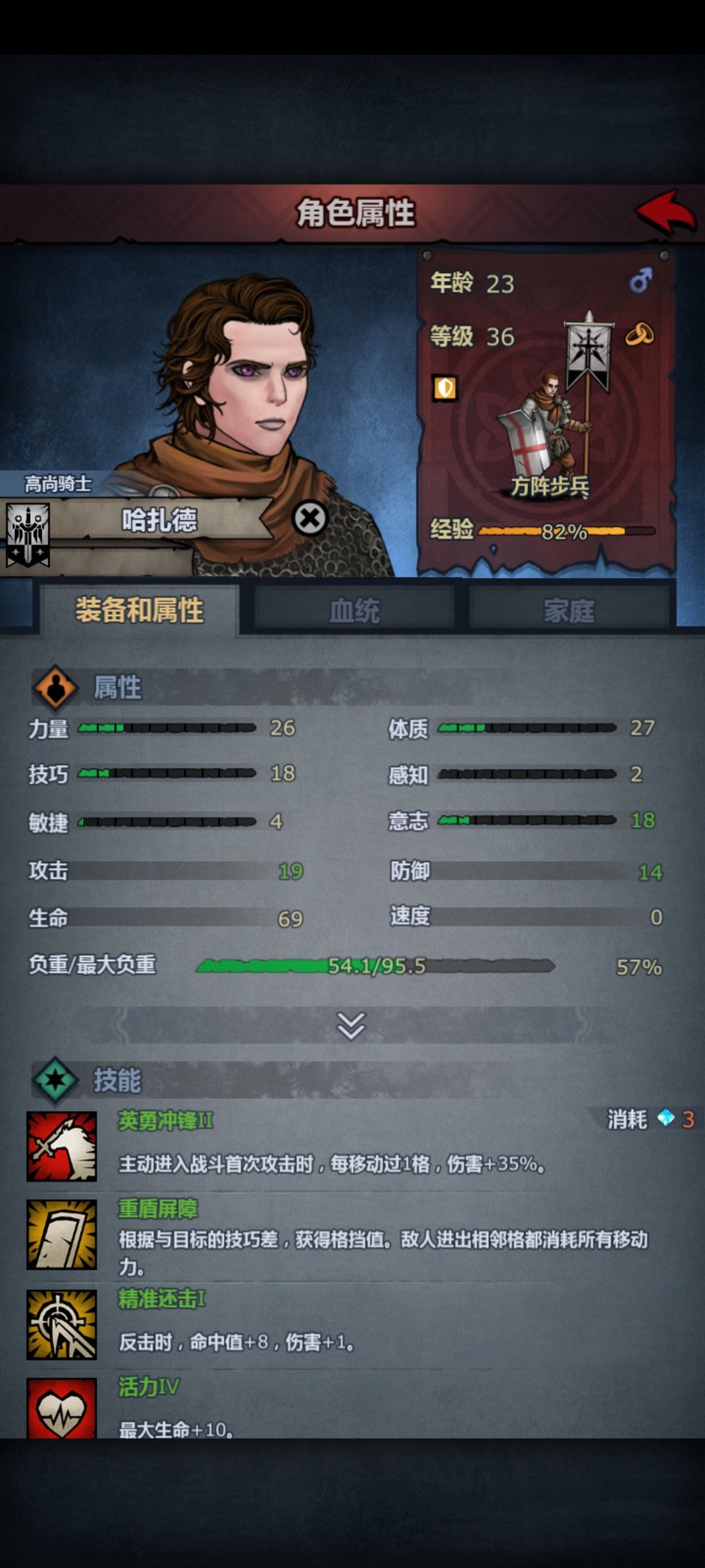 天启骑士转职难就难在意志不够。一般人把哈扎德当铁甲小宝或者重骑玩。但是哈扎德的b体c意属性和骑士精神特性,很容易达到天启意志的转职要求。还差体力,所以拿到之后转方阵步兵。不转铁甲是因为那会儿还没解锁铁甲。吃方阵吃到37级体力28点就可以了,把他下了编队,备用。