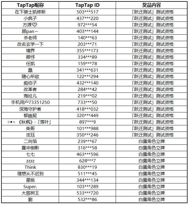 呜呜会从所有符合要求的回帖中,随机抽取20位开拓者送出「跃迁测试」测试资格,以及另外10位送出白露角色立牌一份~