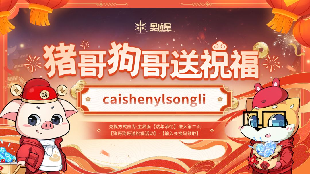 领取方式:兑换方式应为:主界面【瑞年添忆】进入第二页-【猪哥狗哥送祝福活动】-【输入兑换码领取】