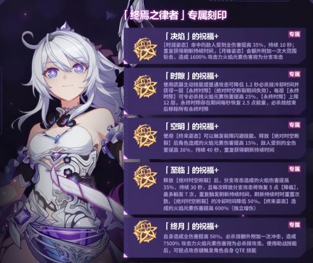 这次的往世乐土会将【终焉之律者】以及【始源之律者】作为可选的角色,而且还有一些她们的一些专属刻印,然后有全新的【关卡效果】与【增益因子】我们先来看看角色的一些专属刻印哦~