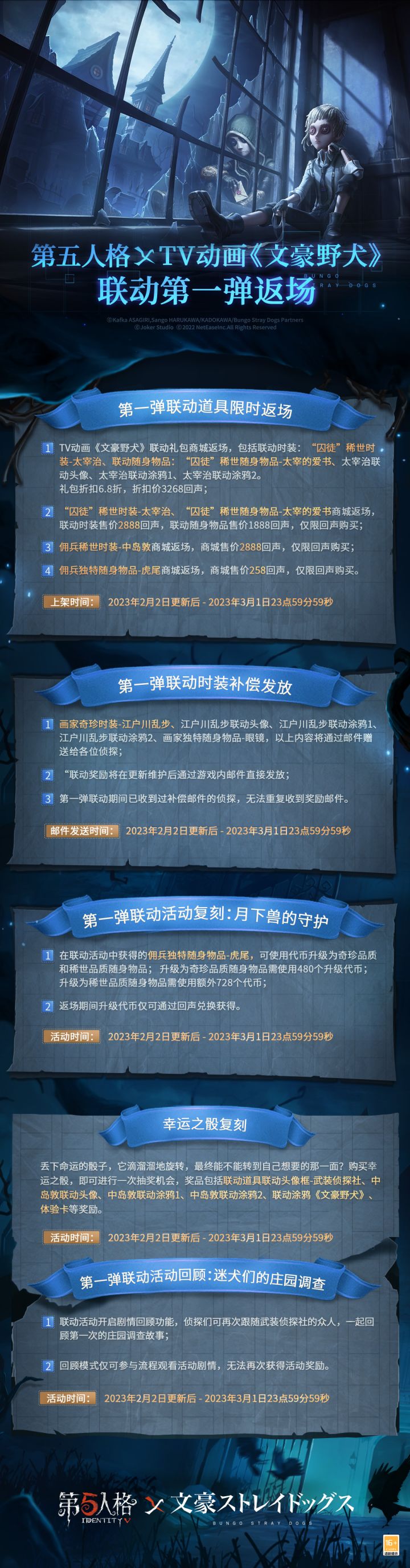 第五人格×TV动画《文豪野犬》联动第二弹即将开启,