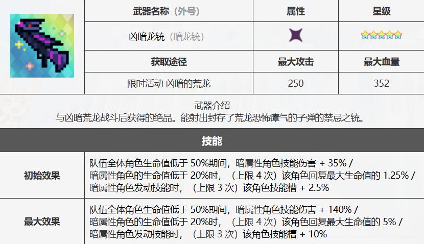 本次复刻并没有新增武器,但是暗龙铳在目前的暗队依旧有着较高的使用率,建议大家不要错过