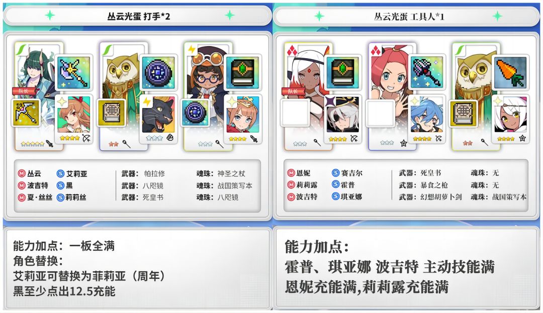 由于boss频繁遁地和fever条偏长的原因,本次活动铃铛也推荐使用光技伤进行攻略,尤其注意开局满充的配置让大佬们在第一轮打出爆发